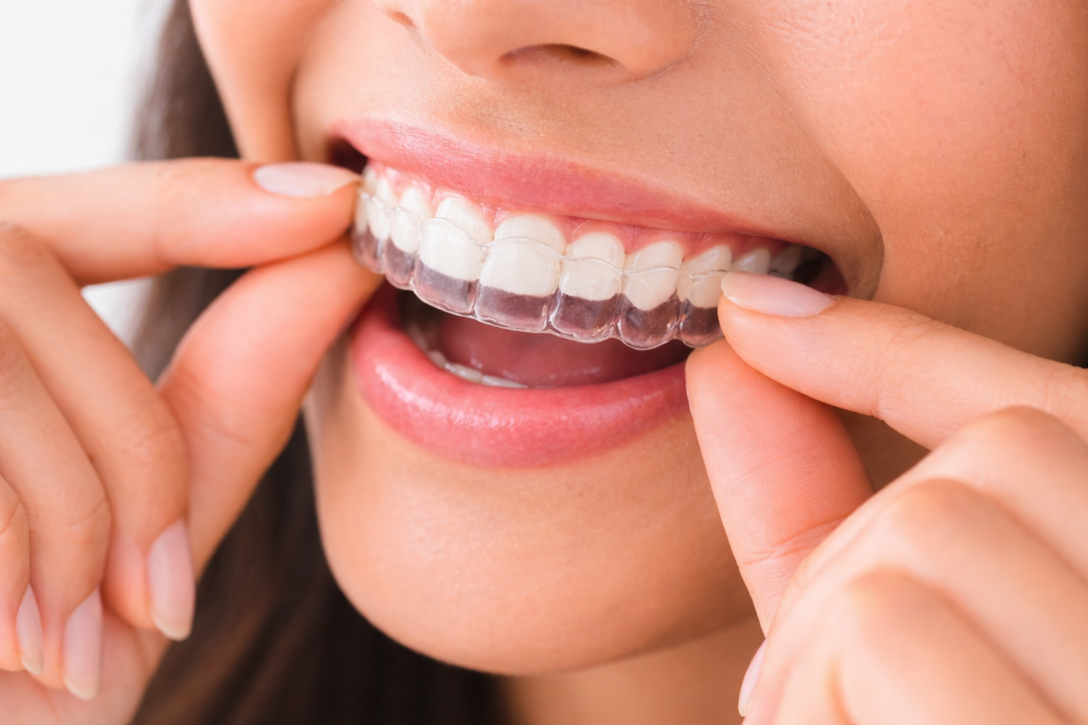 Clear aligners are transparent, removable trays that gradually move teeth into desired positions. You wear each set for 1-2 weeks before switching to the next in the series. They're nearly invisible, removable for eating and cleaning, and generally comfortable. Treatment typically takes 12-18 months for moderate cases. They work best for mild to moderate alignment issues and require compliance - wearing them 20-22 hours daily.